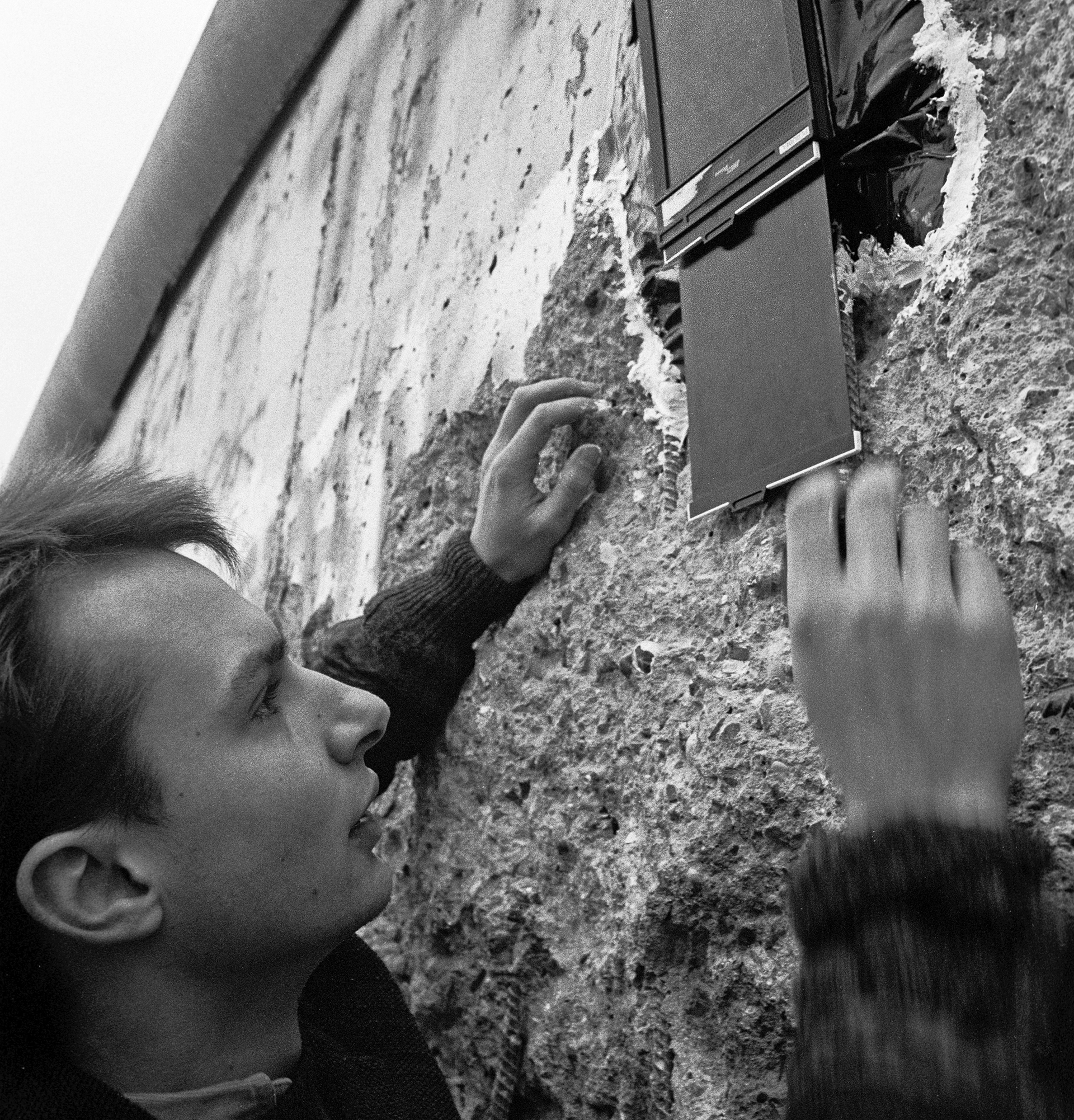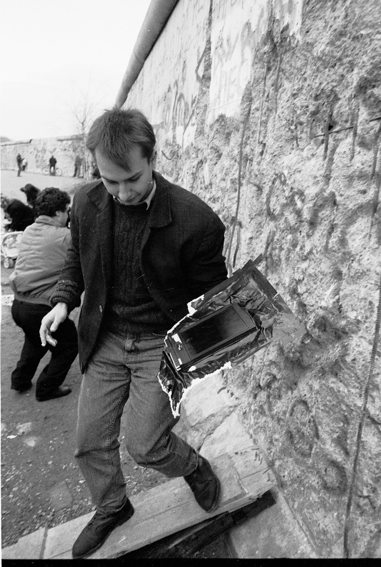 - Marcus Kaiser with the plan film cassette Berlin Wall, 1989 B&W Print, 18×24 cm Marcus Kaiser