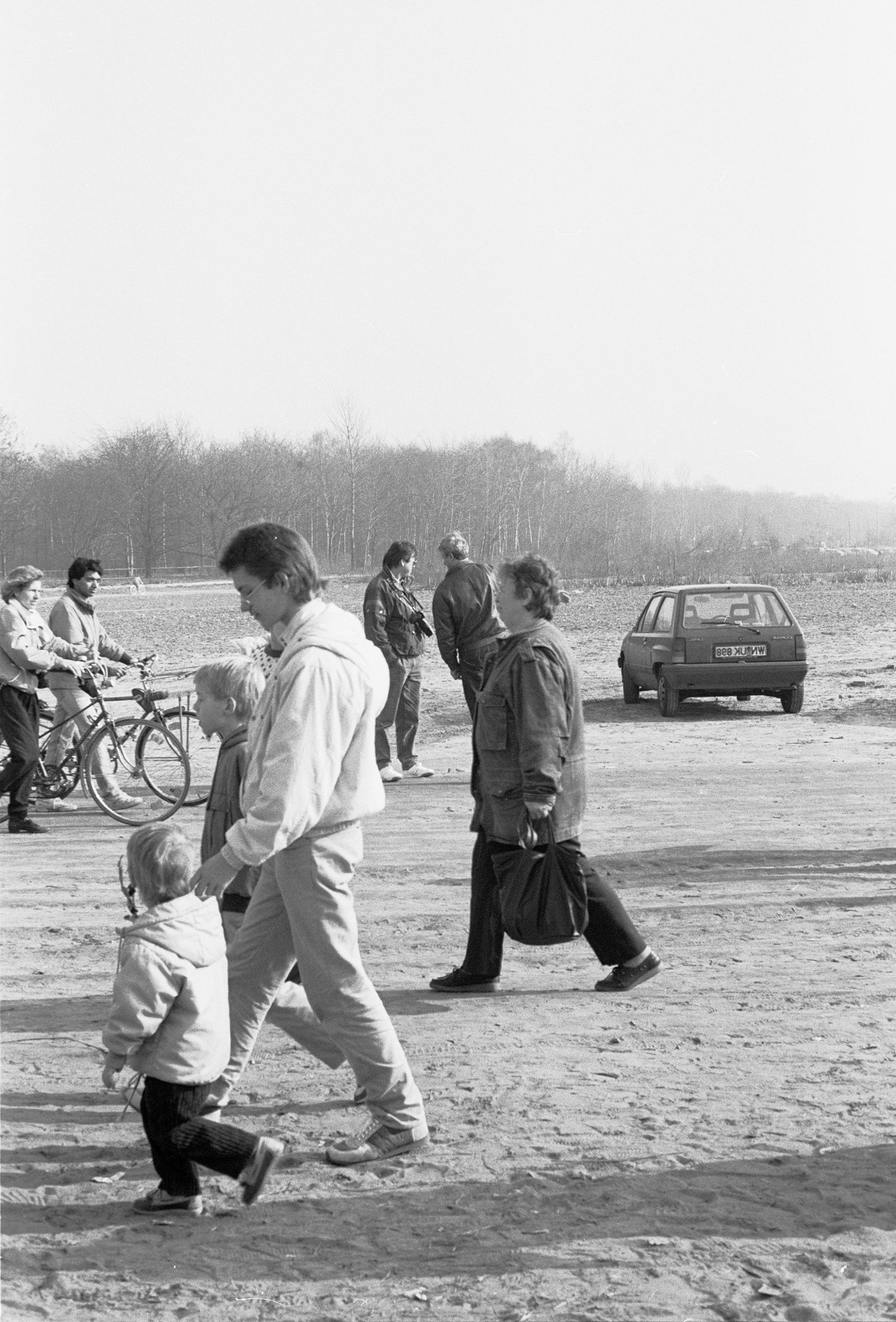 The rapidly changing situation in Berlin during November and December 1989 prompted the artist Marcus Kaiser to travel to the city. The Berlin Wall was already full of numerous openings, holes and breaches, which had been hammered into it by both Berliners and tourists, and Kaiser used some of these holes to encase a camera obscura. At each of the selected openings along the border he took photographs in both directions, east and west. From the Reichstag Building to Potsdamer Platz and the Prinz-Albert-Gelände (ruin of the former Gestapo headquarters) to the border crossing on Prinzenstraße. The final photographic work consists of seven large-format diptychs.